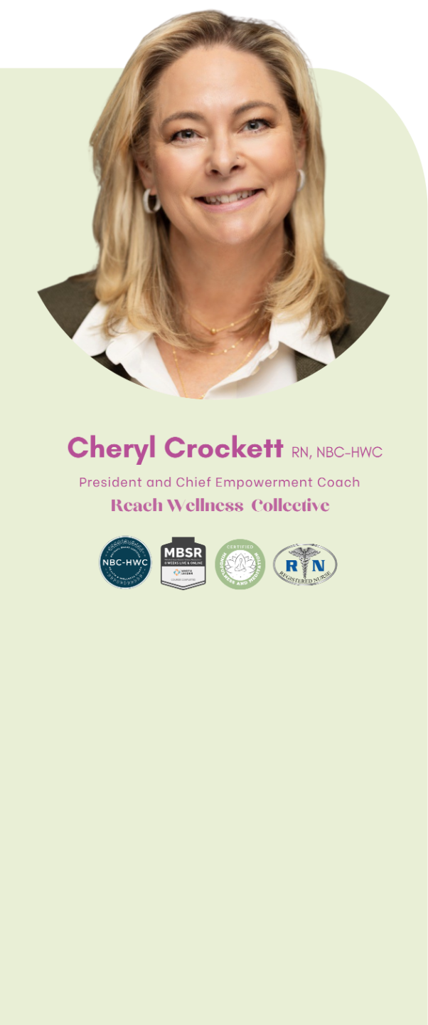 With over 20 years of experience in healthcare as a National Board-Certified Health and Wellness Coach (NBC-HWC), Certified Nutrition Coach, and Registered Nurse, I started Reach Wellness Collective to support individuals and teams with clear, compassionate, and science-backed strategies for lasting well-being.
